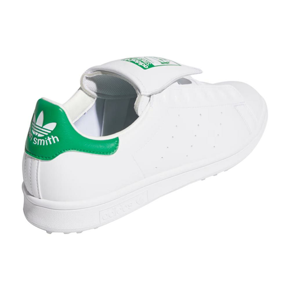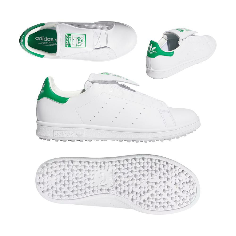 オリジナルズのシューズとしては初のBOA搭載モデルとなっていながら、アイコニックなスタンスミスのシルエットやデザインに新たなユニークさをあしらったものに仕上がっています。通常のスタンスミスにはない、防水の合成皮革アッパー・芝生でしっかりとグリップ力を生むスパイクレスラバーアウトソール・よりクッション性を高めたミッドソールの内部構造はシューレースモデルと同様にゴルフのために作られた仕様になっています。それに今回はBOA クロージャーを搭載しました。中足部のアッパーを全面的に引っ張ることで、おしゃれで汎用性の高いデザインを干渉せずゴルフに必要な安定性をもたらします。特徴的なのが天然皮革素材を使ったモールドシュータンです。スタンスミスのロゴを前面的に表現しながらタンから手を離せば自動的にBOAのダイヤルを隠してくれる特殊な構造により、クリーンなデザインを実現しています。