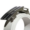 バックルのストッパーにより微妙なフィット感も自在に調整できるNo hole systemを採用したベルト。スリーストライプスタイルを打ち出すシルバーバックルデザイン。