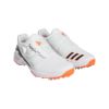 レースモデルと同様に軽量性と快適性が向上しながら、更に強く速く振れる性能が大幅に強化されたコンセプトはそのままに、ZGシリーズ特有のTRI-WRAP BOA構造が更に進化。ZG23シリーズに共通する新ミッドソール・アッパー・アウトソールは同様に継承。TRI-WRAPのパネルは更に薄く軽くしながら素材強度が向上する、ものフィラメント素材を採用することで、前作のBOAモデルから更に軽量化に成功しながら安定性とホールド感の向上を実現。構造的にはメインパネルとトップパネルに分かれており、前作になかった機能として、トップパネルが足の甲の高さや形状に合わせて自動的に安定性とフィット感の観点から最適な位置にパネルが収まるような新機能を搭載。BOAパネルの起点となる内足側の両パネルがペルトループ構造で重なりあっている構造で、トップパネルの位置がBOAダイヤルを締める際に順応し位置が変化できる。それに加えて内側側はパネルの起点と外足側にはレースガイドが新しいスタビリティーウィングに連結していることで、前作の構造にはなかった、足裏を含む360°を強力に安定させることが可能になりスイング時に驚異的な横方向に対する安定を実現する。これらの安定性がアップしながらもアッパーの構造もハーフブーティー構造を採用することで強くホールドする安定構造のタイトさや当たりを軽減。重量:約380g/25.5cm、ツアーパフォーマンスワイドラスト(EEE相当)。※練習場のご使用は適しておりませんのでご注意ください。