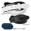 シュリンク合皮のロゴのエンボスがアクセント。裏面はエアーメッシュ素材を使用し、通気性が良く蒸れにくい設計となっています。サイズ/ウエスト中心:95cm、W3.5cm×L110cm、ベルトフリーカット可能仕様:有。中国製。