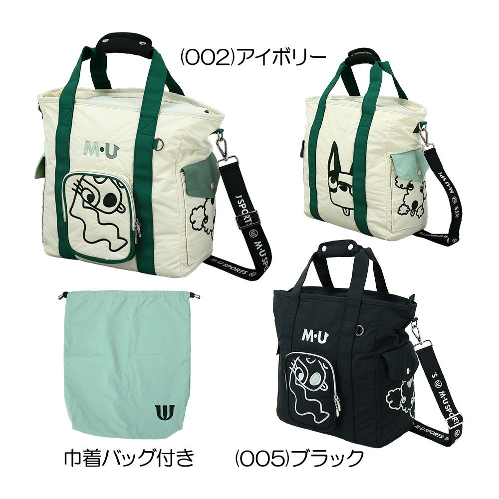 カジュアル感の有る撥水機能付きナイロンワッシャー素材を使用した軽量トート型ボストンバッグ。全てモチーフがひょうきんなロンパリ目のキャラクターシリーズのプラスワン企画でBBには便利なランドリー巾着バッグが付いています。ニュアンスカラーの配色がMUには新鮮でトレンディーなカラーリングが新しい。本体外側は3つのポケット、内側にも2つのポケットが有り収納力も抜群です。ショルダーでもベルトを付けて斜め掛けでも可能な2WAY仕様。ゴルフだけでなくタウンにも旅行にもアウトドアでも活躍する軽量トートバッグは老若男女問わず幅広い方々にお勧めです。同じシリーズのバッグ類とセットすると機能面でも優れ、お洒落感抜群のお勧めシリーズ。