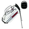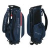 スタンドタイプのキャディバッグ。コンパクトながら7個のポケットを装備し、右サイド差し込みファスナーポケットの内側にはパイル地を使用、左サイドには出し入れしやすいポケットを採用。シンプルなデザインの為どんなスタイルにも合わせやすく使い勝手の良いアイテム。口枠4分割。セパレーター3分割。