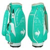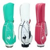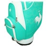 サイドのグラデーションとにわとりロゴが特徴のキャディバッグ。マットなPUと光沢感のあるエナメルを組み合わせたデザイン。