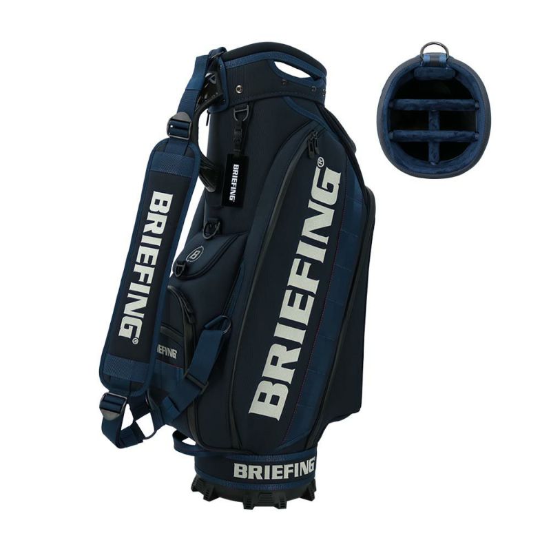 BRIEFINGらしいミリタリーエッセンスを搭載。ツアー転戦や海外遠征を考慮した「PRO SERIES」のキャディバッグ。BRIEFING GOLFの契約プロの要望を考慮して作られた、キャディバッグの「CR-3」です。【オススメポイント】■プロユースに耐えうる素材:・車の衝突の衝撃から守るエアバッグにも採用されている、中空構造の高強力糸で作られた中空バリスティックナイロン「AIR BALLISTIC NYLON」をメインファブリックに採用しています。・軽量性がありながらも、摩耗・引裂きに強い高強度な素材でラフに扱えます。■使いやすさとこだわりのデザイン。・本体付属のハンドルは、BRIEFINGらしいカモフラージュ柄を採用しています。・ブランドを象徴するウェイビングテープもオン。・BRIEFINGロゴを配したオリジナルの口枠を採用しており、クラブの出しやすいように、口枠の角度や分割形式にこだわっています。■スリムでありながら抜群の収納性。・レインウェアなどの嵩張るアイテムの収納に便利な大型ポケット、ゴルフボール1ダースを収納できるポケットなど多数配置しています。・小物収納に最適なフロントポケットは、開閉しやすいマグネット仕様です。・ボールポーチ等の小物も引っ掛けられるDカンをあしらっています。