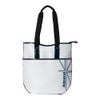 ユニオンクロスとランパントをあしらったモデル。ソフトな合皮とエナメル生地を組み合わせた、スポーティーなデザイン。持ち歩きやゴルフ場のロッカー収納でも嵩張りにくいスマートな縦型トートバッグ。腕を通しやすい開口部の形状で、機能性にも配慮。ロゴは控えめなサイズで、使いやすさを意識したデザインです。