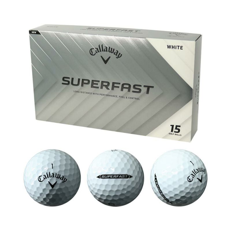 アメリカではすでにラインアップされてきているSUPERFASTボールが、日本初上陸です。何よりユニークなのがパッケージで、通常の1ダース12個入りではなく、1箱にたっぷりと15個入り。リーズナブルなモデルを一気にまとめ買いしたい、ゴルフバッグに1箱でたくさん入れておきたいといった方には、ピッタリの製品となっています。構造は2ピースで、ハイパーエラスティック・ソフトファスト・コアとハイブリッドカバーという組み合わせは、SUPERSOFTボールとまったく同じですが、素材の配合などが変えられており、ややしっかり感のある仕上がり。性能としては、飛距離を重視した設計です。