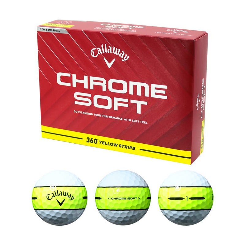 アライメント入りのボールは、店頭においてどんどん存在感を増しており、年々、販売数も増加してきています。キャロウェイでも、これまでさまざまなタイプのものを採用。人気を博してきましたが、今回、従来以上に目立つスタイルのものを投入することとなりました。太く鮮やかな黄色いラインが360度に描かれているため、ボールの転がりは一目瞭然。 また、ターゲットに対してボールをセットする際に役立つよう、中央には黒い線も加えられています。飛距離などの性能は、2024年にリニューアルされたCHROME SOFTボールと同じで、コアなどの素材や空力の見直しにより、「柔らかいのに、飛ぶ」という特性をさらにブラッシュアップ。ウレタンカバーをより均一な厚みにすることができるようになったことで、グリーン周りでのパフォーマンスも大きく向上しています。