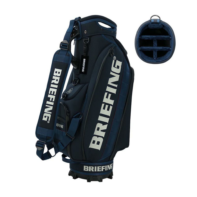 BRIEFINGらしいミリタリーエッセンスを搭載。ツアー転戦や海外遠征を考慮した「PRO SERIES」のキャディバッグ。BRIEFING GOLFの契約プロの要望を考慮して作られた、キャディバッグの「CR-3」です。【オススメポイント】■プロユースに耐えうる素材:・車の衝突の衝撃から守るエアバッグにも採用されている、中空構造の高強力糸で作られた中空バリスティックナイロン「AIR BALLISTIC NYLON」をメインファブリックに採用しています。・軽量性がありながらも、摩耗・引裂きに強い高強度な素材でラフに扱えます。■使いやすさとこだわりのデザイン。・本体付属のハンドルは、BRIEFINGらしいカモフラージュ柄を採用しています。・ブランドを象徴するウェイビングテープもオン。・BRIEFINGロゴを配したオリジナルの口枠を採用しており、クラブの出しやすいように、口枠の角度や分割形式にこだわっています。■スリムでありながら抜群の収納性。・レインウェアなどの嵩張るアイテムの収納に便利な大型ポケット、ゴルフボール1ダースを収納できるポケットなど多数配置しています。・小物収納に最適なフロントポケットは、開閉しやすいマグネット仕様です。・ボールポーチ等の小物も引っ掛けられるDカンをあしらっています。
