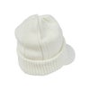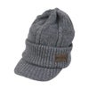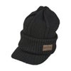 耳まで覆うことができ、冷たい風も防げるツバ付きニット。中国製。