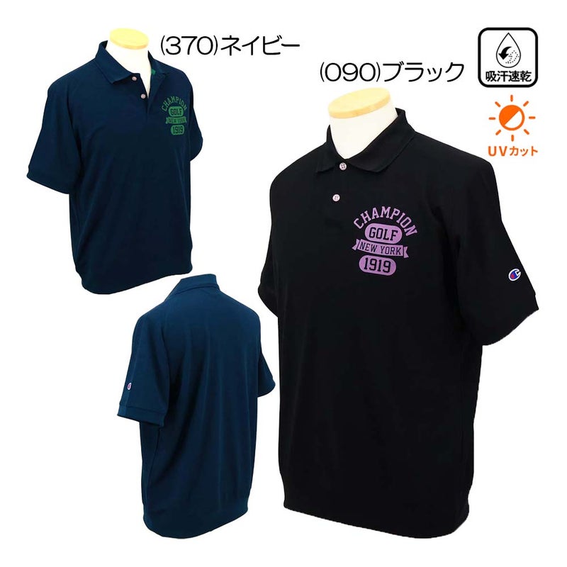 ドライかつソフトな肌触りと独特な杢感のある表情を持った、通気性の高い素材を使用したショートスリーブポロシャツです。凹凸のある特殊な糸を使用しているのでしわが寄りにくく、速乾性、UVカット機能なども備えています。身幅、肩幅にゆとりを持たせたリラックスフィット。肩や腕の動きがスムーズで脱ぎ着もしやすい独特な形状のラグランスリーブで、ヘリンボーン柄の襟の裏側は通気性をさらに高めるメッシュ構造。リブ仕様の裾をタックアウトして通気性を確保できるので春先の涼しい時期だけでなく、暑い季節でも快適にプレーできます。左胸にはカレッジイメージの書体で「CHAMPION(チャンピオン)」と「GOLF(ゴルフ)」、「NEW YORK(ニューヨーク)」、ChampionRブランド創業年である「1919」を4段に組んだグラフィックをラバープリントで入れ、襟裏にプリント色と同色のテープを付けています。機能性:吸汗速乾/UVカット/通気。特徴:Rubber Print/Collar Ventilation。中国製。