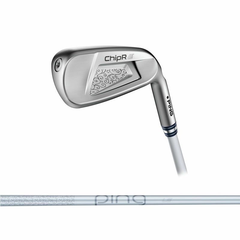 グリーン周りでどのクラブを使ったらいいか悩んでいるアナタへ~「ChipR LE」でラクラク寄せワン ! レディース「G LE3」シリーズのユーザーにフィットするデザイン。オリジナルのバックフェースデザイン、ChipR LE専用シャフトを採用。ChipR LEをレディースG LE3シリーズと合わせて使おう ! ライの悪い場所、深いラフの中、グリーン周りの花道、雨や朝露で濡れている芝からの使用シチュエーションに、アプローチの再現性が向上。打ち出しの高さが一定・縦距離の安定性が向上・方向性のバラツキが減少します。【テクノロジー】■ハイドロパールクローム仕上げ。水分を弾く特性を持つピン独自のハイドロパールクローム仕上げをクラブの表面に施すことで、湿ったラフや朝露に濡れたシチュエーションでも最適なスピン量のショットが可能。チッパーではスピンを求める場面は少ないが、ドライな芝と濡れた芝でのスピン差を無くすために有効。小傷がつきにくいという効果も。■マイクロマックス・グルーヴ。各溝の角度と間隔を最適化し、従来設計よりも溝(グルーヴ)の本数を増やしたことで、あらゆるシチュエーションで求められる摩擦力とスピン量を実現。濡れた状態やラフからでも、飛距離コントロール性能と再現性が向上した新技術をチッパーにも搭載。ハイドロパールクローム仕上げと同様に、芝の状態によるスピン差を無くすために有効な溝に仕上がっている。