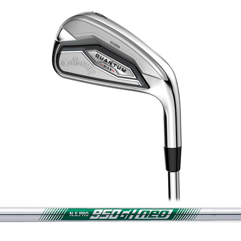 やさしさを感じさせるモデルである「QUANTUMMAXFASTアイアン」は、QUANTUMMAXアイアンと同じく、I#5~9、PW、AW、GW、SWの9本という番手構成ですが、ロフト角は一部の番手で、よりストロングな設定となっています。ヘッド形状は、トウからヒールにかけての長さを感じさせる大きなものとなっており、QUANTUMMAXアイアンよりオフセットも大きめです。安心感は絶大で、バックフェースのデザインも、下部の厚みのある部分の面積が大きく、いかにも低重心でボールが上がりやすそうなスタイルとなっています。シャフトは、SPDSTAR50、 N.S.PRO950GHneo、N.S.PROZELOS7が用意されています。