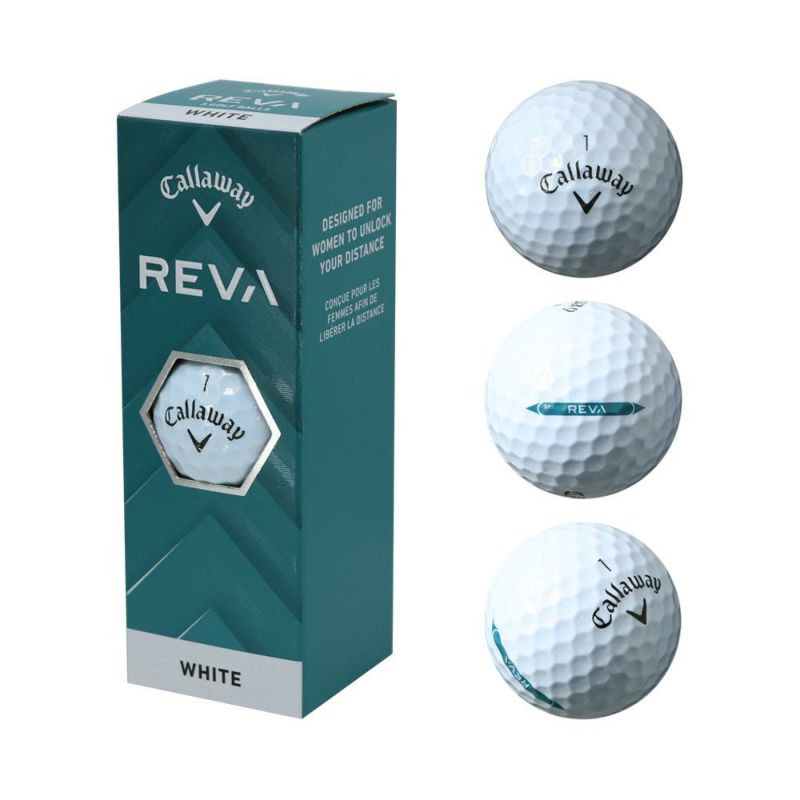 女性ゴルファー向けパッケージセットのブランド名である「REVA」が、ボールの名称にも使用されてデビューです。最大の特徴は、一般的なものよりも大きくなっているサイズ。構えたときの安心感は絶大で、芝の上でも低めにティーアップしたような地面から少し浮いた状態となることにより、簡単にナイスショットを打っていくことができます。また、内部に搭載されている低コンプレッションコアはとてもソフトで反発力高く、直径も大きい設計。力があまりない女性ゴルファーでも強く大きな弾道を真っすぐに飛ばしやすくなっています。