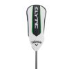 「ELYTE」のフェアウェイウッドでは、スピードと寛容性のハイレベルでの両立はもちろんのこと、とくにフェアウェイウッドで課題となっている大きな2つのミスに着目して開発が進められました。1つは打点のバラつきで、ドライバーと同様にコントロールポイントがPARADYM Ai SMOKE MAXフェアウェイウッドと比較して10倍に増加したAi 10x FACEが、さまざまなミスヒットに対して力強く対応します。もう1つは、フェース下部でのインパクト。トップのような当たりであっても球がしっかりと上がって飛んでくれるよう、ソール内側から少し浮いた状態に搭載されているタングステン・スピードウェーブと、段差によって後部が高く浮いているような形状のステップ・ソールデザインが新たに導入されています。スタンダードタイプの「ELYTEフェアウェイウッド」は、キャロウェイらしい丸みのある見た目と、ボールを拾いやすそうなシャローフェースを採用。