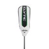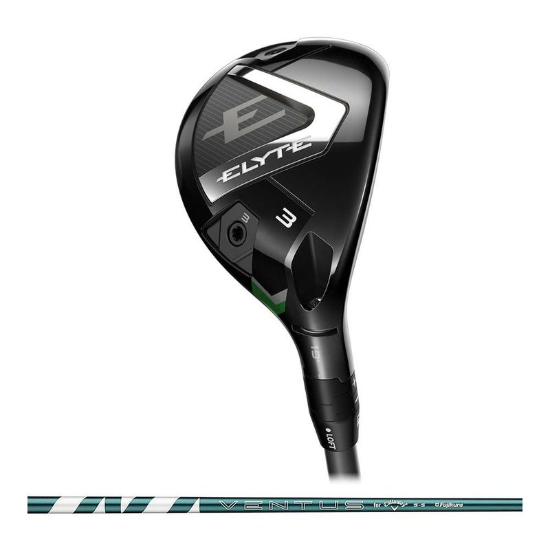 「ELYTE」のユーティリティにおいても、高次元のスピードと寛容性を同時に実現するべく、コントロールポイントが増加したAi 10x FACEを搭載していますが、もう1つ注力された点として、それぞれのプレーヤーに合った弾道へと調整できる機能が追加されたことを挙げることができます。まず、ソール後方のトウ・ヒールには異なる重さの台形型のウェイトを装着。これはツアープレーヤーからの意見を取り入れて採用されたもので、2つのウェイトを入れ替えることにより、左右約12ヤードの範囲で球筋の変更が可能となっています。また、アジャスタブルホーゼルも進化し、ニューオプティフィット4と呼ばれる新たなシステムを導入。ライ角とロフト角のコンビネーションは、計7パターンになり、よりライ角設定のバリエーションが増えた仕様になっています。シリーズのなかでもスタンダードの位置づけとなるのは、「ELYTEユーティリティ」。フェアウェイウッドに近い、構えやすさを感じる丸いシェイプをしており、ロフトラインアップは3Hから5Hまで3種類を揃えています。