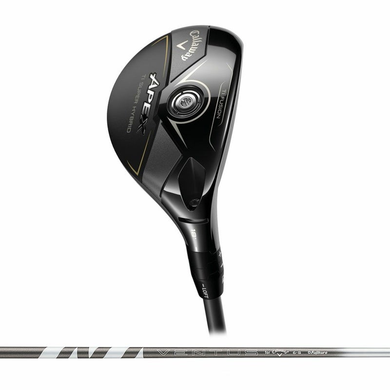 最新作は、操作性とスーパーな飛びに注力UW同様の抜けの良いソールも装備 2019年から始まったSUPER HYBRIDという名前のついたモデルは、これまでどちらかといえば、大きなヘッドによる安心感ややさしさをイメージさせるものでしたが、新登場の「APEX Ti SUPER HYBRID」は少し性格が異なります。チタン製フェースの反発力を生かして、より飛距離性能を注力したタイプとなっており、ELYTEシリーズで言えば、ELYTE TITANIUMフェアウェイウッドのような存在です。導入されている専用のAi APEX FACEは、ミスヒットに対する強さや着弾範囲の狭さもさることながら、前へ前へと突き進んでいく弾道を実現することに、より重きを置いて設計。長めの設定となっているクラブ長さも、飛びのパフォーマンスに大きく貢献しています。APEX UW同様にステップ・ソールデザインが採用されているため、ラフなどでも抜群の抜けの良さを発揮。ロフトは2Hから5Hまでの4種類で、全番手に最新のニューオプティフィット4と呼ばれるアジャスタブルホーゼルを搭載しています。 ■チタンフェースを生かして驚異的な飛距離性能 「APEX Ti SUPER HYBRID」は、より飛距離性能を重視するというコンセプトのもとで開発されたモデルです。どちらかといえば大きめのヘッドによるやさしいモデルというイメージが強かった、過去のSUPER HYBRID(2019年)やEPIC SUPER HYBRID(2021年)、PARADYM SUPER HYBRID(2023年)とは、立ち位置が少し異なります。PARADYM SUPER HYBRIDと比較すると、「APEX Ti SUPER HYBRID」のヘッドは、前後長もフェース長も小さくなり、操作性に特化した形に生まれ変わりました。フェースはチタン製、ボディはステンレススチール製です。過去モデルとは異なり、カーボン製のクラウンは導入していません。また、PARADYM SUPER HYBRIDでは、ソールとヘッド内部にウェイトが搭載されていましたが、「APEX Ti SUPER HYBRID」では、ヘッド内には設置せず、ソールのスクリューウェイトのみとしていることで、重心位置が高くなり、スピン性能とコントロール性能の向上を図っています。 ■「Ai APEX FACE」で突き抜けるような弾道 フェースには、APEX UWと同様、最新の「Ai APEX FACE」が導入されていますが、もちろん、「APEX Ti SUPER HYBRID」専用の設計です。ELYTEシリーズで登場したAi 10x FACEのAPEX Ti SUPER HYBRIDバージョンと言えるものになっており、このモデルのターゲットとなる中間層のプレーヤーのリアルなデータを生かしながらAIが設計しています。ミスヒットに強さを発揮したり、着弾範囲を小さくしたりする弾道補正能力も備えており、強く前へ前へと出ていくボールの打ち出し、ボールスピードを、より重視しながらもコントロール性能を備えた、高次元の機能を持つフェースとなっています。 ■台形状の段差をつけたステップ・ソールデザイン ソールには、APEX UWと同様にステップ・ソールデザインが採用されました。フェース側とヘッド後端の間の中間部分に、台形状の段差を設置。ソールの後ろ側が少し地面から浮くような形状になっているため、ボールをヒットした際には、気持ち良くヘッドが抜けていきます。また、ヘッドの座りの良さも考慮されており、地面にセットした際、ヘッドがぐらついたり、回転したりはせず、とても構えやすくなっています。 ■クラブ長さの設定も、飛距離性能の向上に貢献 前述のとおり、「APEX Ti SUPER HYBRID」は、より飛距離性能を重視した設計となっており、それはクラブ長さからも伺えます。ELYTEユーティリティと比較しても、番手それぞれで0.25インチ長い設定となっており、より飛ばしていくことができる仕様になっていると言えます。 ■全番手にELYTEのユーティリティと同じホーゼル 「APEX Ti SUPER HYBRID」の番手は、2H(ロフト16度)、3H(ロフト18度)、4H(ロフト21度)、5H(ロフト24度)の4種類で、2Hについてはカスタムのみでの展開となります。全番手に装備されているアジャスタブルホーゼルは、ELYTEシリーズのユーティリティで初採用となったニューオプティフィット4と呼ばれる最新のもので、計7つのロフトとライ角のコンビネーションが可能となっています。 ※全ロフトNEW OPTIFIT4装着