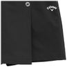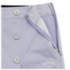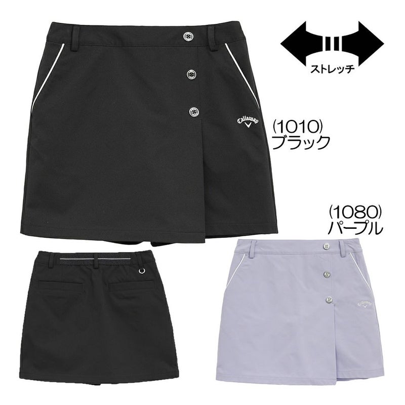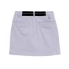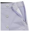 全方向に伸縮性のある8WAYの綾目素材を使用したスカートです。ショートパンツ一体型のスコートタイプで、動きやすさと安心感を兼ね備えています。フロントにはオリジナルロゴ入りのボタンをあしらい、ウエスト後ろはラメ入りのゴムベルト仕様で、デザインのアクセントになっています。8WAYストレッチ/全方向に伸びる素材。ベトナム製。