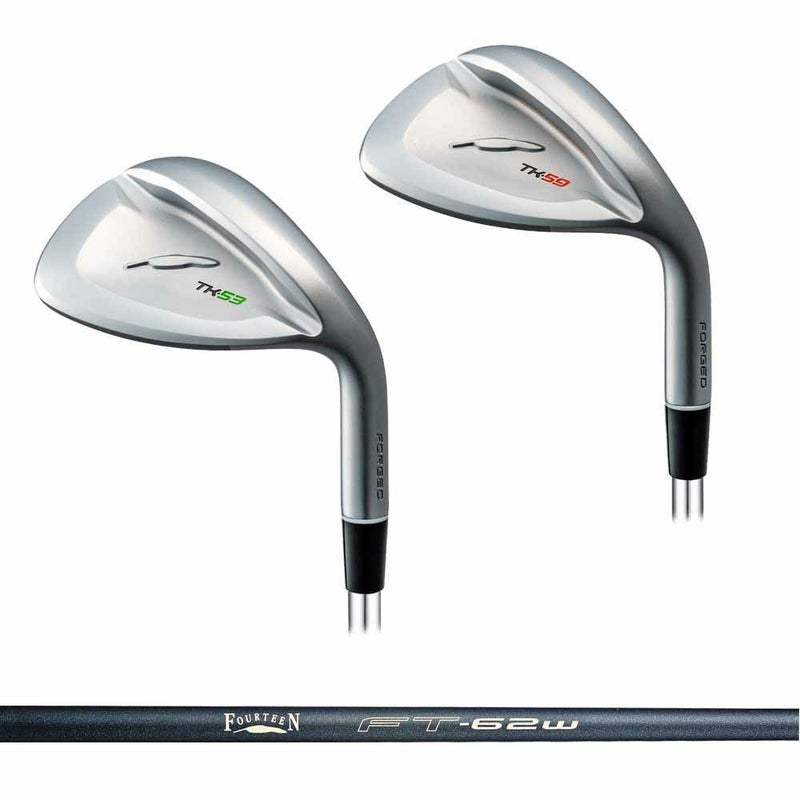 世の中のザックリを撲滅させる。ウェッジの命、ソールのリーディングエッジに物理的にザックリを排除できる丸みを帯びた「Tankソール」を搭載。どんなにザックリしようとも芝上を戦車のごとく突き進んでボールが拾える圧倒的なパフォーマンスを発揮する「TK」が、求める弾道によって選べる53°と59°の2つのロフトで新登場です。ランニングアプローチで寄せる『TK-53』。キャリー5、ラン5の割合でランニングアプローチで寄せる。ピッチエンドランで寄せる『TK-59』。キャリー7、ラン3の割合でピッチエンドランで寄せる。【DETAIL】■とにかくザックリミスに強いTankソール。ダフリ気味なゴルファーは、ミスへの不安からボールに対し鋭角にヘッドを当てに行きがちですが、それは通常のウェッジショットにおいてザックリをより助長してしまう事になります。だから「TK」はリーディングエッジ側の形状を鋭角な入射角に対応できるよう、緻密に計算した丸み形状としてザックリミスへの強さを極限まで高めました・・・と言いますか、恐ろしいほどに刺さりません。■ザックリ防止を突き詰めたクラブバランス。通常、ゴルフクラブはグリップ側が軽くヘッド側が重たいため切り返しでタメが入りやすく、ヘッド入射角が鋭角になりやすいことがザックリの原因を作り出しています。「TK」はヘッドを軽量化させてバランスポイントを手元側に移動させることで、ヘッド入射角が鋭角になる現象を抑制します。■デュアルマテリアル複合鍛造ヘッドの優位性。TKはボリュームあるソール形状をフルに活かすための大型ヘッドとなっていますが、同時に重量も増えてしまうと扱いにくさという機能的デメリットが出てしまいます。そんな懸念を解消するための新技術が「デュアルマテリアル複合鍛造」。ソール内部にセラミック系の軽比重素材(CMCコア)を埋め込んだ鍛造製法は大型ヘッドでありながら狙った重量と重心の実現を可能にしました。重心を低くなりすぎない最適な高さに保ち、ショットの安定性を高めています。■よりボールを拾えるリーディングエッジ。前作よりリーディングエッジを丸くし、よりボールを拾いやすいフェース形状に進化。アプローチのイメージを出しやすくさらに実戦においてウェッジとしての使いやすさを向上させました。