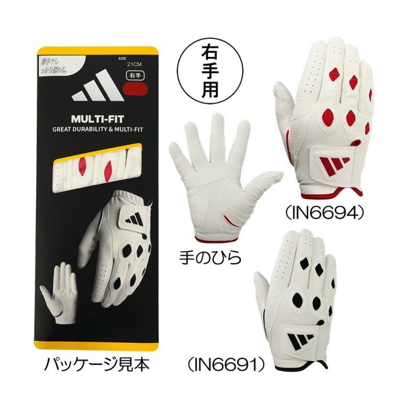 厚手でしっかり握れる。2000年の発売以来多くのゴルファーに愛されロングセラーを続けているマルチフィット。●厚手でしっかり握れる:従来モデルから平側のパッチの面積を約20%アップしクラブとの密着度を向上させている。厚みがあり密着度が高まることでクラブをしっかりと握れ、より強く振ることができる。●ハイブリッド設計:指先は薄く柔らかくすることでクラブとのフィーリングを高め、クラブを自在にコントロールできる。他の厚手グローブには無いハイブリッド設計を実現。●耐久性の向上:摩耗しやすい小指の下部分と親指にパッチをあてることで従来モデルよりもさらに耐久性を高めている。●ホールド力アップ:従来よりもニットパーツを減らすことで甲のホールド感が向上。安定性を高めスイング時のブレをおさえる。耐久性とパワーを求めるゴルファーに向けたグローブ。※右手用と左手用が同一モデルとなります。
