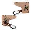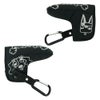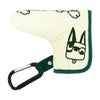 カジュアル感の有る撥水機能付きナイロンワッシャー素材を使用したピン型パターカバー(PCP)。全てモチーフがひょうきんなロンパリ目のキャラクターシリーズのプラスワン企画でPCPには取り外し便利なフィドロックが付いています。ゴルフプレイ中はフィドロック付きテープのカラビナをベルトループに装着し、グリーン周りでパターを使用する際だけ外したカバーをテープ先のフィドロックに近づけると磁力で自動に吸い付き止まり、外すときは下にスライドすると簡単に外れストレスフリーで快適にゴルフが楽しめる優れもの。ニュアンスカラーの配色がMUには新鮮でトレンディーなカラーリングが新しく老若男女問わず幅広い方々にお勧め出来るシリーズです。同じシリーズのバッグ類とセットすると機能面でも優れ、お洒落感抜群です。