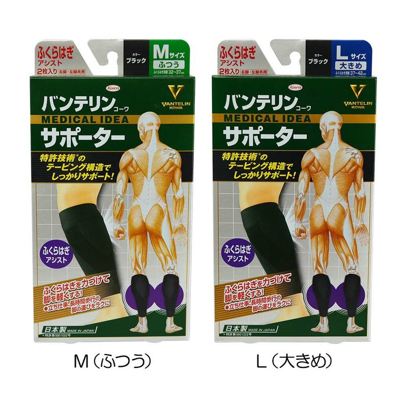 テーピング理論により、腓腹筋(ひふくきん)の過度なブレを抑制して脚の負担を軽減し、歩く時の脚の運びをラクにサポートします。ふくらはぎの主要な筋肉である腓腹筋(ひふくきん)の働きに着目し、「生活テーピング理論」に基づいた構造設計を行いました。【特長】X字型テーピング構造。X字型構造を採用することで、腓腹筋の働きをサポートし、脚の動きがスムーズになります。歩きやすくなることに加え、腓腹筋のブレを抑制することで、疲れにくくなります。■機能を安定させるアンカー構造。編み方を強くすることで、サポーターをズレにくくする構造。上下のアンカーが適度な締め付けでサポーターのズレ上がり、ズレ下がりを防ぎ、テーピング機能を安定させます。【サイズの選び方】ふくらはぎの一番太い部分の周囲(cm)を測ってください。・ふつう/Mサイズ:32~37cm。・大きめ/Lサイズ:37~42cm。※2つのサイズに該当する場合、大きいサイズをおすすめします。