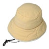 薄中綿キルトのバケットハット。ウェアとお揃いのキルト柄です。帽体裏地にフリース素材を使用したあたたか仕様になっています。風対策として、取り外し式のあごひもがついています。機能性:ストレッチ、撥水加工、保温。中国製。【デオドラントネーム】消臭・抗菌効果。