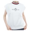 吸水速乾性とUVカット機能を備えた、フレンチコクーンシルエットのモックネックシャツ。生地は凹凸のあるサッカー調素材を使用しており、肌離れがよく通気性を確保します。肩に入れたタックが、胸と背中のボディーラインを強調せずふわっと立体的にカバーしてくれます。裾はタックとダブルヘム仕様で、全体のシルエットに奥行きを与えています。衿部分にはブランドシグネチャーのカラーラインリブを採用し、背面には着脱を容易にするファスナー付。ノースリーブには抵抗にある方には程よい袖丈感になっています。中国製。