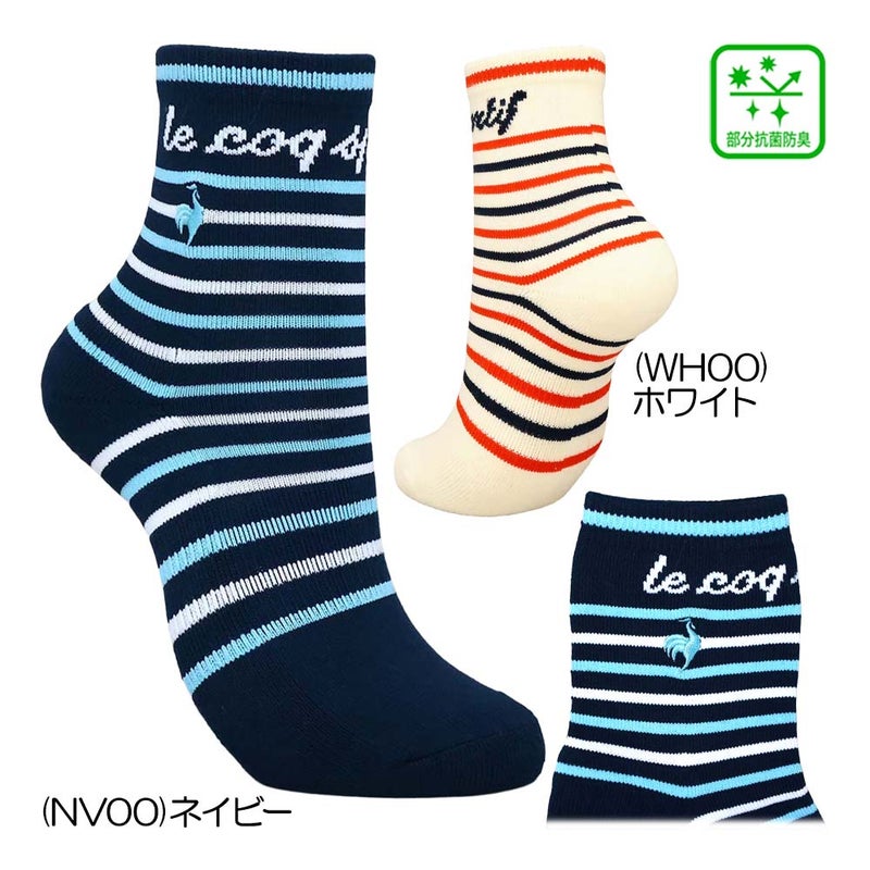 足元にさりげなくアクセントをプラスできる、ボーダー柄のショート丈ソックス。合わせやすい配色のラインデザインで、シンプルなゴルフスタイルにも自然になじみます。足元にワンポイントを入れたい方におすすめの一足。スポーティーさとおしゃれ感を両立し、コーディネートの幅を広げてくれるアイテムです。機能:抗菌防臭/足底パイル/足底サポート。中国製。