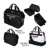 二層式ボストンバッグ。下部ポケットは大きく開口し、ゴルフシューズの収納を想定。上部ポケットはファスナー仕様で出し入れがしやすく、中身も見やすい仕様。内側にファスナーポケット完備。