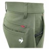 春先のゴルフにおすすめの快適な着心地の9分丈ゴルフパンツです。ゴルフの動きに特化した独自の立体設計「ストレッチフォーサー」を搭載。アドレスやしゃがんだときのストレスを軽減します。7つのポケットを備え、ゴルフ小物も収納しやすい実用的なデザインです。右側のポケットにはコインポケットとロゴテープ、左側のポケットにもコインポケットを配置。さらに、右ヨーク切り替え部にはコンシールファスナーポケットを備えています。ウエスト内側には滑り止め効果のあるシリコンテープ付きで、快適な着用感を実現しています。汚れが落ちやすく、きれいな状態が長持ちする防汚加工を施しています。前ポケット両端にはカン止め配色を採用。さりげないデザインアクセントとなっています。テーパードシルエットで、すっきりとしたシルエットながらも動きやすさを両立しています。レングス:9分丈。シルエット:テーパード。素材:防汚加工済みのストレッチツイル素材。機能:吸汗速乾/2WAYストレッチ/UV CUT(UPF50+)/SUNSCREEN/防汚(水性のみ)※落ちやすい/ウエストストレッチ。ベトナム製 。