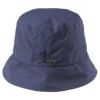 雨の日のゴルフには欠かせないレインハット。トレンドのバケットハットデザイン。ハット型なので、水滴を全方向に逃してくれます。2.5層のストレッチタフタを使用しており、防水性とストレッチ性を兼ね備えた、レインハットになっています。耐水性20000mm、透湿性(B-1法)30000g/mm・24hrs、耐久はっ水。頭周囲にドローコード仕様、スピンドルでサイズ調整可能。中国製。