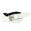 ボタンを押すだけで着脱可能。革調のエンボスが特徴。食事のあとなど少しウエストに余裕が欲しい時も簡単に緩めることができ、ピタッと絞まって、しっかりと固定されるので安心です。フリーカット可能仕様。中国製。