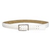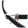 表面は穴が無いタイプのベルトに見えますが、通常の穴があるベルトです。バックルを外してベルト部分を切って長さを調節することが可能です。(ウエスト105cmまで対応可能)