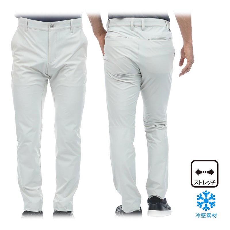 冷感性に優れた薄手のナイロン混素材を使用したテーパードパンツ。肌に触れた際にひんやりとした感触があり、暑い季節でも快適に着用いただけます。高いストレッチ性を備えており、スムーズな動きをサポートします。ウエストの内側にはゴムを採用し、締め付け感を軽減したストレスフリーな設計です。複雑な切替デザインがスポーティーな印象。股下はLサイズで約81cmのロング丈となっています。中国製。