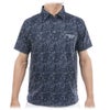 風が通り抜けるメッシュ素材を使用。全体にリーフ柄のプリントをのせているので透け感も気になりにくいデザインです。ラグランスリーブで運動量も確保された台衿付シャツです。機能:通気性。中国製。