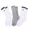 JFロゴ ワンポイント刺繍の靴下3足セット。ポリウレタン弾性繊維「LYCRA(R)」を採用しているので優れた伸縮性とフィット感があり快適です。■底パイル設計:足の負担を軽減。■銀イオン糸仕様:清潔で心地より快適感が持続。■つま先・かかと補強:破れにっくく衝撃から間も守る。機能:抗菌/消臭/DRY。中国製。【LYCRA(R)】ライクラ(R)は、ライクラ社の商標です。裏糸に使用しています。