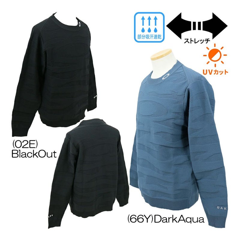 優れたストレッチ性と高い吸汗速乾性のポリエステル糸を採用したクルーネックセーター。立体感のある編地を取り入れ、カモフラージュ調にする事で凹凸感でベタつきを軽減し、デザイン性も兼ね備える。胸と背中部分には編地で大きく表現したエリプスロゴのジャガードが浮き出る価値あるデザイン。軽量感と編地の伸びによるストレッチがあらゆる動きをサポートし、快適なプレーをサポート。レイヤードのしやすいクルーネックで秋から冬のゴルフで活躍するセーター。【機能】吸汗速乾、4WAYストレッチ、軽量、紫外線保護UPF50+。Hydrolix(TM)/吸湿性、発散性、速乾性に優れ、涼しくドライで快適な状態を保ちます。オークリー独自のO Hydrolix(TM)モイスチャーマネジメントシステムが、パフォーマンスをサポートします。中国製。