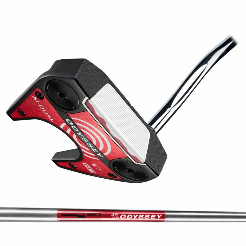 「Ai-DUALパター」は、オデッセイのなかでも人気の高いヘッドに、新開発のAi-DUAL・インサートを組み合わせた製品です。Ai-ONEインサートのようにオフセンターヒットでもボールスピードの安定性を維持しつつ、かつ、従来と比べても打点位置に関わらずより多くのフォーワードスピン(順回転)がかかるようになっており、芝目や傾斜から受ける影響が減らすことで、より薄めのライン(曲がり幅を少なく読む)でカップを狙えるようになりました。■ボールを打つ表面は柔らかく内側は硬い、2種類のウレタン樹脂: Ai-ONE・インサートやAi-ONEチタン・インサートとは違い、ウレタン樹脂のみでつくられており、ボールを打つ表面に柔らかい樹脂、内側に硬い樹脂という2層構造となっています。■ボールスピードの安定性だけでなく、より多くのフォワードスピンを生み出すインサート: Ai-DUAL・インサートでは、2層の樹脂の境目部分がAi-ONE・インサートの裏側のように複雑に曲がりくねった形状となっています。これは、どこで打ってもボールスピードが安定するAi-ONE・インサートのような性能はもちろんのこと、ボールに与えられる回転にも着目してAIが開発したものです。■二等辺三角形のような断面の溝も、フォワードスピンによる転がりの良さに貢献: Ai-DUAL・インサートでは、新たに採用された溝、F.R.D(ForwardRollDesign)グルーブも転がりの良さに貢献しています。■よりWHITEHOTインサートに近い打感・打音を実現:「Ai-DUAL・インサート」はウレタン樹脂のみでつくられているため、打感は柔らかく、Ai-ONE・インサートよりもホワイト・ホットインサートに近い打音となるように設計されてもいます。■ラインアップは6種類で、カスタムにも対応。