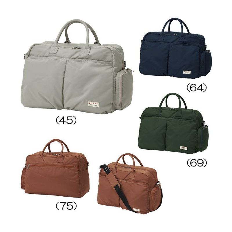 ONOFFナイロンシリーズのボストンバッグ。軽量のナイロンツイル素材の裏地に綿をボンディングした、カジュアルで柔らかなデザインが魅力のオノフ定番モデル。合計5個のファスナー付きポケットを搭載し、小物の収納にも便利な多機能バッグ。また、環境に配慮した仕様でリサイクルファスナーを一部使用し、裏地には再生ポリエステルを採用したこだわりの詰まったアイテムです。■大容量の収納力。スポーツシーンから普段使い、小旅行にも使用できる収納力。内側にファスナーポケット1個付き。■シューズ収納ポケット。フルオープンで出し入れのしやすいシューズインポケット。メイン収納部と分けて収納でき、デオドラントネームの消臭・抗菌効果で使用後も臭い移りを気にせず収納できます。【特長】小物が整理しやすい5個のファスナー付きポケット(シューズ収納ポケット含む)、ショルダーベルト付き、デオドラントネーム(消臭・抗菌効果)付きポケット、リサイクルファスナー(一部)、再生ポリエステル(裏地)。