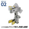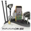 置く・挟むを1台で可能にするゴルフスイング確認用スマホホルダー『スマホザウルス2』。気軽にスマートフォンを立てたり、キャディバッグなどに挟むことができるスマホホルダーです。幅4cm~9cmまで挟めるクリップで、大型のスマートフォンにも対応しています。スマートフォンを打席のテーブルの上などに置くのはもちろん、インカメラを使用すれば、打席の前に置いて自分のスイングを画面で見ながら確認することも可能です。また、撮影時に高さが欲しい時は、固定用クリップでキャディバッグの口枠を挟むことで、正面に近いアングルで撮影できます。2箇所のジョイントで撮影の角度が変えられるので、スマートフォンの向きも自由に調節できます。撮影用の三脚のようにサイズも大きくなく、組み立ても不要なので気軽に自分のスイングが見られます。【特長】■置く・挟むを1台で実現しスイングの確認ができる。自分のスイングを撮影する時に、立てかけるものがなくても、土台となるクリップで、テーブルや打席の前に置くことができます。また、クリップは挟むこともできるので、自分のキャディバッグやイスのひじ掛けなどに固定できます。コンパクトなサイズなので持ち運びしやすく、設置も簡単です。■回転するジョイントでカメラを様々な向きに調節が可能。2種類の回転するジョイントでカメラを様々な向きに調節が可能です。「ボールジョイント」は、スマートフォンを挟むクリップ部分の角度を調節でき、「回転ジョイント」は360度回転するので撮影する向きを調節できます。両方の角度を調節することで、好きなアングルでスイングを撮影できます。■厚さ2cmまで調節可能な固定用クリップ。固定用のクリップは厚さ2cmまで挟むことができるので、キャディバッグの口枠などにスマートフォンを固定できます。