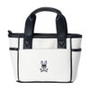 レザーライクなソフト合皮を使用したキャディバッグ。前面のカラフルバニーとロゴ刺繍がPOPでカジュアルな中にも高級感を演出。収納力に優れたモデル。ポケットは外4、内1