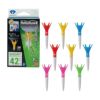 ショートホールでのFWやアイアンで威力を発揮するゴルフティー。ショット後に飛んだティーが近くに飛ぶのでティー探しも楽々。●点で支える柔らかヘッドで抵抗を軽減。上部が王冠状になっており、6ヵ所の点でボールを支えます。ヘッド部分は柔らかい素材を使用し、インパクト時の抵抗が軽減されるので、振り抜きがよくなります。●ティーショット後のティーが探しやすい。ティーグラウンドに挿さる下部には、リブが入っています。リブが入っていることで、ティーショット時に、ティーが抜けにくくなっているのでティーを探しやすい設計になっています。※予告なくパッケージが変更になり、ご注文のタイミングによっては新旧パッケージが混在する場合がございます。