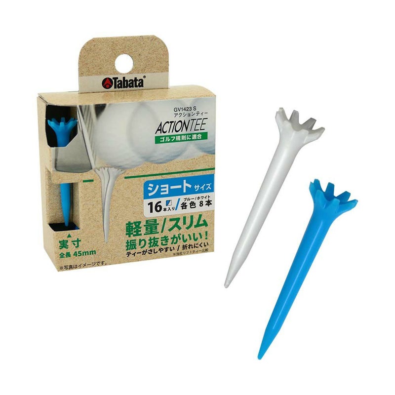 安定性に優れた8支点。軽量・スリムで振り抜きがいい ! ショートサイズ。しなるから、折れにくい。丈夫で頼れるスリムタイプ。人気のブルー(青)とホワイト(白)の2色入り。ティーアップのティーの長さは45mm(4.5cm)。●ゴルフ規則に適合。※予告なくパッケージが変更になり、ご注文のタイミングによっては新旧パッケージが混在する場合がございます。