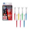 ショートホールでのFWやアイアンで威力を発揮するゴルフティー。ショット後に飛んだティーが近くに飛ぶのでティー探しも楽々。●点で支える柔らかヘッドで抵抗を軽減。上部が王冠状になっており、6ヵ所の点でボールを支えます。ヘッド部分は柔らかい素材を使用し、インパクト時の抵抗が軽減されるので、振り抜きがよくなります。●ティーショット後のティーが探しやすい。ティーグラウンドに挿さる下部には、リブが入っています。リブが入っていることで、ティーショット時に、ティーが抜けにくくなっているのでティーを探しやすい設計になっています。※予告なくパッケージが変更になり、ご注文のタイミングによっては新旧パッケージが混在する場合がございます。