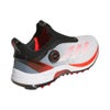 シューズ全体の構造から、スイングのエネルギーを増幅する軽量パワーギア。アグレッシブなフットワークを高次元でサポートする安定性と強いグリップ力を兼ね備え、同カテゴリーのツアーシューズと比べて約100gもの軽量化に成功。◆ アッパー ◆ 軽量で薄く、足のブレをさらに強力に制御する防水スプリントスキンアッパー。スプリントフレームやエンジニアードニットなどの異なる素材をアッパー全体にレイヤリングし、安定性とホールド力に優れたアッパー構造を採用することで重量が増えずに強く速いスイングをサポートする。 ◆ ミッドソール ◆ 超軽量で高反発なLIGHTSTRIKE PROを搭載。BOOSTと同等のクッション性能に加え、高反発性能によってスイング時に鋭い蹴りを可能にする。屈曲時の形状維持性能によって、高い推進力も誇る。ヒール周りには通常のLIGHTSTRIKEによって、さらに反発力を高めながら安定性を担保。◆ DYNAMIC TORSION PLATE ◆ スイング時のパワーを増幅する足裏の特殊パーツ。中足部アーチをホールドし、トルクコントロールをつま先までもたらすことでエネルギーロスを軽減。3本のブレードがLIGHTSTRIKE PROに接着され、相乗効果で推進力を高めることで、鋭い蹴りを可能にしながら歩行時の疲労を軽減。 ◆ スパイクモアアウトソール ◆ スパイクとスパイクレスの長所を併せ持ち、歩行時とスイング時の性能を自動的に切り替わるテクノロジーがさらに進化。屈曲する外周のアームにより、軽快な歩行と驚異的なグリップ力を両立。中心部の特殊なラグ形状でダイナミックなフットワークを高次元でサポート。◆ BOA + PRIMEKNIT ◆革新的なアッパー内蔵型のクロージャー構造のサブサーフェス直足BOAラップを搭載。高伸縮素材のPRIMEKNITが足の形状に順応し、フィット感と通気性を向上。BOAのレースとパネルも内蔵され、ブレを抑えてアグレッシブなスイングをサポート。BOAパネルにもシークエンスレーシングとTRI-WRAP構造を採用し、安定性と順応性が大きく向上。