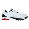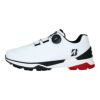 高いグリップ力とクッション性ある履き心地の『 ゆったり幅広4Eモデル 』前モデル(SHG380)対比「足幅」を広げ、圧迫感のない「よりゆったりとした履き心地」にこだわったモデルです。上層(柔らかめ)と下層(硬め)の硬度を変えた新設計「2重構造ミッドソール」と、踵部の「TPU製ヒールカウンター」により、クッション性と安定性を確保しています。さらに、インソールは「ゼロ・スパイク バイター ツアー(SH2401)」で好評のクッション性の高い「2層インソール」を使用することで、高いクッション性を追求しました。グリップ性能については、新設計アウトソールを採用することで高いグリップ力を追求しています。また、雨にも強い防水仕様となっています。デザインは、幅広でもすっきりと見えるスポーティなアッパーデザインです。■BOA(R)フィットシステム L6ダイヤル搭載。■防水仕様。