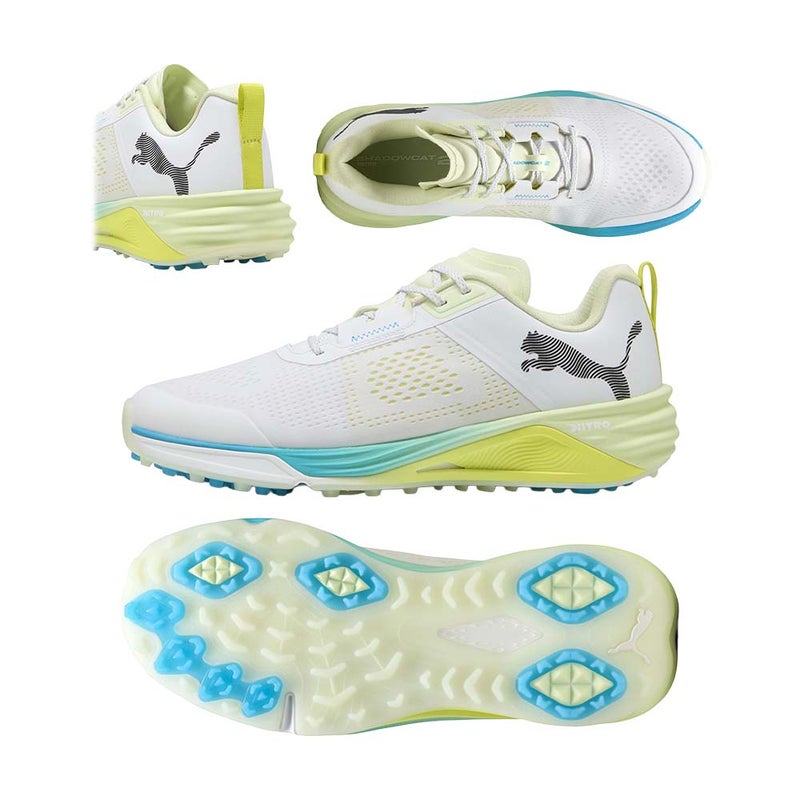 ゴルフコースでの爆発的なパワーと安定したパフォーマンスを引き出すために設計された、シャドウキャット ニトロ 2。軽量アッパーに大胆なビッグキャットロゴ、内側には“NITRO”ロゴを配し、プレー中も存在感を放つスタイリッシュなデザインが魅力です。足の形に沿うように人体工学に基づいて成形された立体的アッパーと、アシンメトリー構造が高いフィット感を実現。スイング時の横ブレを抑える補強アッパーと安定プレートの組み合わせにより、力の伝達を助け、安定したショットをサポートします。アウトソールはトラクションの配置を最適化し、接地面積を広げることでスパイクレスながら確かなグリップ力を発揮。さらに、前作比16%の軽量化(27cmで約355g)に成功し、18ホールを通して疲れにくい履き心地を実現しています。クッションには軽量かつ反発性に優れた NITRO FOAMを採用。歩行時の快適さからスイング時の力強い踏み込みまでサポートします。防水メッシュアッパーにより急な天候変化にも対応でき、雨の日でも安心してプレー可能。パフォーマンスと快適性を求めるゴルファーにふさわしい、次世代のスパイクレスシューズです。幅:レギュラー丈つま先のタイプ:ラウンドトゥ。クロージャー:シューレース式。スパイクレスのアウトソール。ヒールタイプ:フラットヒール重量:約355g(27cm)※前作比約16%カット。防水メッシュアッパー。NITRO FOAM:軽量で反発性の高いクッショニングを実現するNITRO FOAM。プーマキャットのアウトソールデザイン。