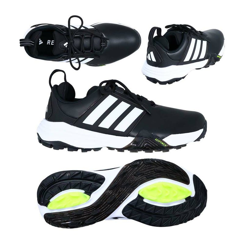 Traxionテクノロジーがグリーンで確かなグリップ力を発揮するゴルフシューズ。アディパワー 26 ワイド スパイクレス ゴルフでプレーをパワーアップしよう。このシューズは正確で安定した土台として、ラウンドを重ねるごとに上達をサポートする。レザーと合成素材のアッパーが優れた耐久性と柔軟性をもたらし、テキスタイルライニングが最初のティーショットから最後のパットまで安定した履き心地を保つ。Traxionテクノロジーがスイングのたびに確かなグリップ力とバランスを提供する。軽量クッショニングを追加するRepetitorミッドソールを搭載し、コースを回っているあいだ中ずっと滑らかで高反発のストライドを実現。大胆なスリーストライプスと機能的なディテールで仕上げられたこのアディダスシューズは、シャープなエッジと優れた機能性を併せ持ち、パフォーマンスを損なうことなく快適かつスタイリッシュにゴルフを楽しめる。【詳細】・ワイドフィット。・シューレース。・レザーと合成素材のアッパー。・テキスタイルソックライナー。・ラバーアウトソール。・TRAXIONテクノロジー。・REPETITORミッドソール。REPETITORミッドソール