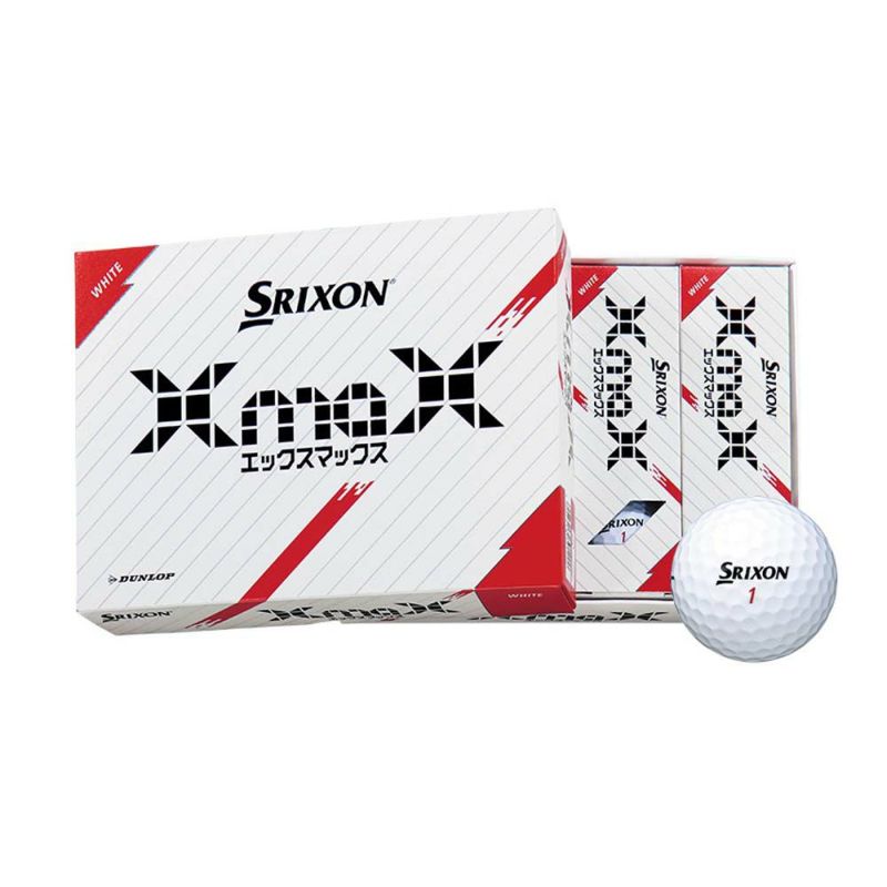 SRIXON X 史上 No.1の飛び ! 飛距離マックス ! 驚きマックス ! 飛距離追求型のSRIXON X シリーズがさらに進化。高反発、高初速の飛びとソフトな打感を両立したボールでゴルファーをサポート。「スリクソン XmaX」は、ソフトでありながら高い反発と初速を生み出す「エックスマックス コア」と、新たな材料を配合したミッド層とカバーの組み合わせにより、ドライバーでの高い直進性と飛距離性能に加えて、ソフトな打感という相反する要素を両立させました。【特長】■「エックスマックス コア」により高反発・高初速も実現。XmaXはコアがソフト。またコアの硬度差を小さくしたことで、過度な変形とエネルギーロスをおさで高反発化。■新規材料配合で高内出し・低スピンを実現 ! 外剛内柔度を高めたことで打ち出し角もアップ。■軟らかいのに飛距離マックス ! 「強弾道 338 スピードディンプル」を搭載。相乗効果により、やわらかさをもちながら、高い飛距離性能を実現しました。■ボールのサイドにプリントした「ナビゲートライン」は、センターラインを長く、ロゴの上下にある横方向のラインの間隔を広くした新デザインを採用。ターゲットに対してセットしやすく、正しいストロークができるようサポートします。