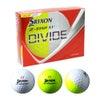 【ビジュアルとパフォーマンス、どちらも譲れない】■見えるって、こんなにズルい。イエローとホワイトで半球ずつ色分けしたボールは、2色の境目部のラインを目標に対して合わせやすいほか、 飛球中のボールの回転が分かりやすく、ボールのスピン回転がハッキリ見えることが特長です。グリーン上での転がりも見えやすいので、普段ゴルフボールにラインを引いている方にもおすすめです。さらに、見えやすいことでロストボールしにくく、遠くからでも自分のボールと分かりやすいため誤球防止にもなります。【9代目Z-ATAR・Z-ATAR XV】■NEW Z-STARシリーズのキーテクノロジー「高スピン バイオ ウレタンカバー」。最適な分子設計を行うことで、勝負を決めるグリーン周りでのアプローチスピン量が3モデル共通して向上。■NEW Z-STARシリーズを支えるコアテクノロジー「強弾道338スピードディンプル」。ショット後半でボールがひと伸びする弾道で飛距離アップを実現。また、アゲンストでも風に負けず、さらに高い飛距離性能を発揮。【攻めのZ-ATAR XV 弾きの良い打感で、最高レベルのドライバー飛距離性能】■最高レベルのドライバー飛距離で大胆に攻めて、飛びのアドバンテージをとりたいゴルファーへ。【特に飛距離を求めるゴルファーに合わせた専用設計】■ドライバー飛距離性能。■薄いカバー厚により、ボールの反発を担うコア・ミッドをその分大きくした設計。初速のアップとドライバーのスピン量を抑え、高い飛距離性能をサポート。■高初速化を維持しつつ、ドライバーショットで低スピン化を実現し、高い飛距離性能をサポート。
